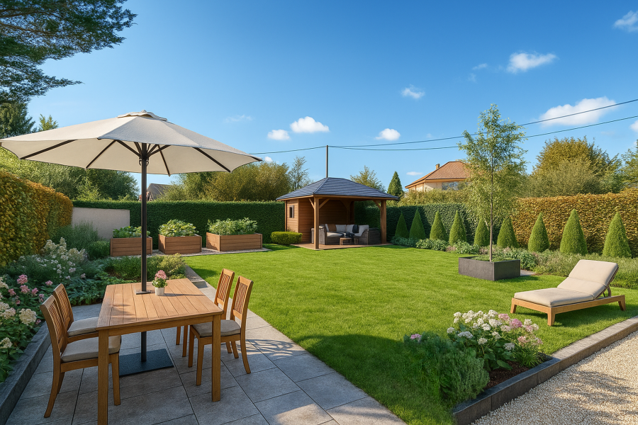 Парковка включает гараж и 2-3 частных места перед домом. Дом пригоден для проживания, но нуждается в ремонте для соответствия современным требованиям. Важные посты уже обновлены: окна с двойным остеклением из ПВХ, натуральная сланцевая крыша, недавно установленный масляный котел и сигнализация.