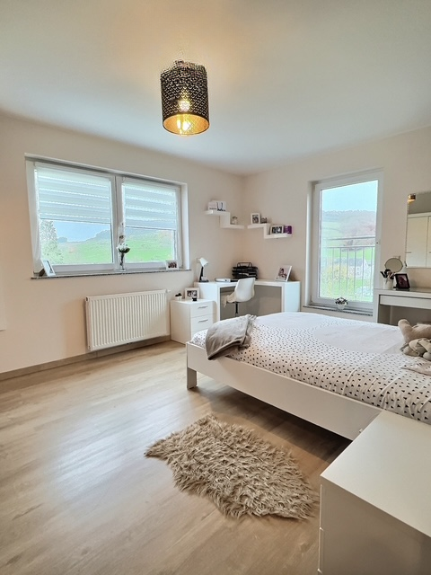 Дом площадью 273м² (жилая 218м²) был построен в 2012 году на тихой второстепенной улице. Вас встретит прихожая, ведущая в различные комнаты, включая мастер-свит с 14м² спальней, гардеробной 7м² и большой душевой с туалетом 9.5м². Из коридора доступ в двойной гараж.