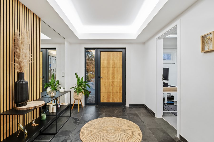 Просторный дом для одной семьи, полностью обновленный в период с 2022 по 2024 год, расположен всего в нескольких шагах от центра Дюделанжа, на тихой улице, рядом со всеми удобствами, такими как школы, магазины, вокзал, детские сады и бассейн.