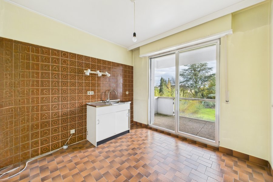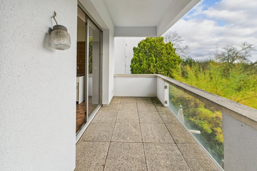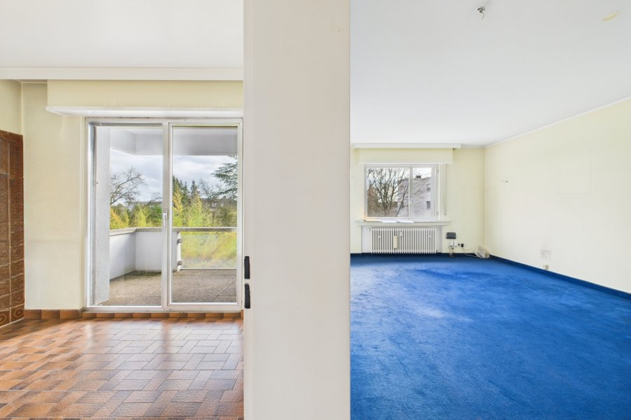Апартамент с одной спальней, полностью подлежащий ремонту, расположен в Страссене. Компоновка включает в себя холл (1,8 м²), гостиную (24 м²) с выходом на балкон, кухню (9 м²), душевую комнату (3,2 м²) и спальню (11,7 м²). Снаружи находится балкон площадью 4,7 м². Предоставляется одно внутреннее парковочное место и подвал площадью 2,34 м².