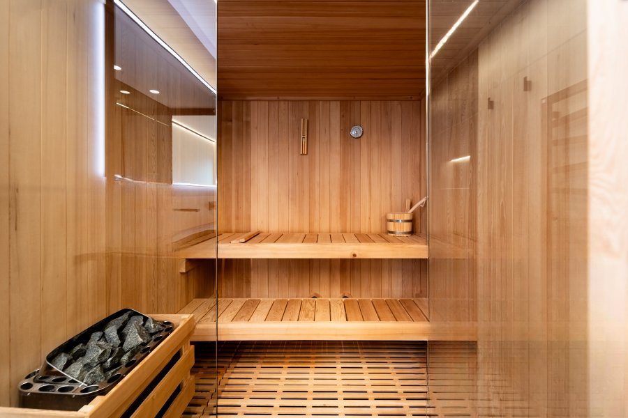 ♀️ Ваш частный спа: роскошная сауна на 2-4 человека встроена в квартиру. Предусмотрено место для стиральной машины для максимального комфорта.