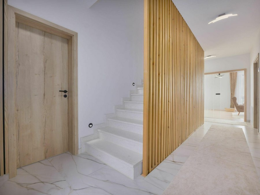 Преимущества собственности: современный, светлый, хорошо ухоженный дом, высококачественная отделка и материалы, участок 4.8 аров, возможность частного полностью независимого интегрированного жилья, возможность отдельного адреса, захватывающий вид, лучший в районе, тихий, зеленый район, гараж и открытое парковочное место.