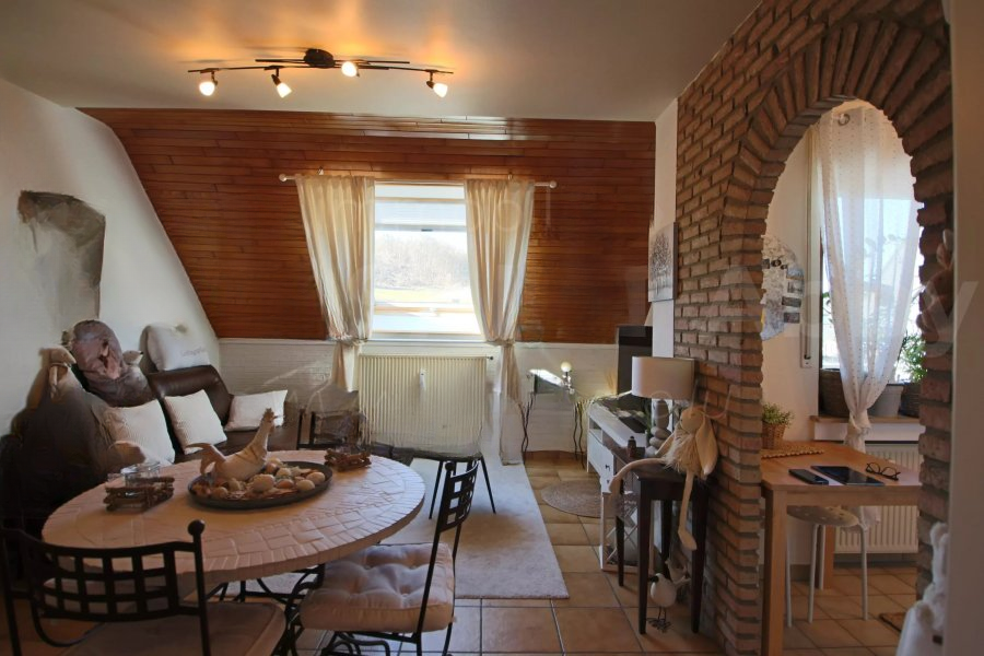 Двухуровневая квартира на 3 и 4 этажах включает: прихожую, гостиную, оборудованную кухню, балкон, туалет, 2 спальни, ванную комнату с туалетом и подключением для стиральной машины. Доступ в общую мансарду возможен только через эту квартиру.