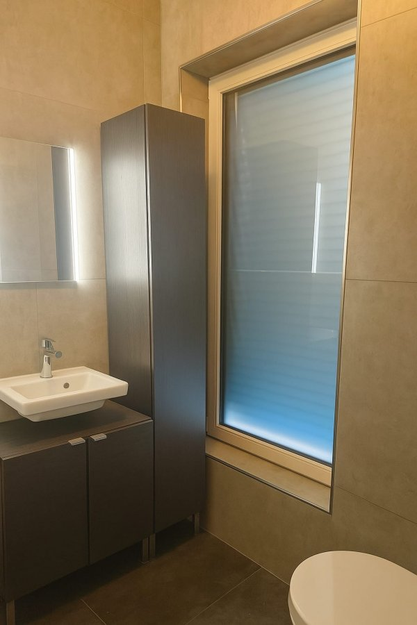 Композиция: большой зал с открытой кухней; две просторные спальни (21 м² и 15 м²); две душевые с туалетом; небольшая комната, которая может использоваться как гардеробная или кабинет; приятный балкон; включено внутреннее парковочное место; подвал.