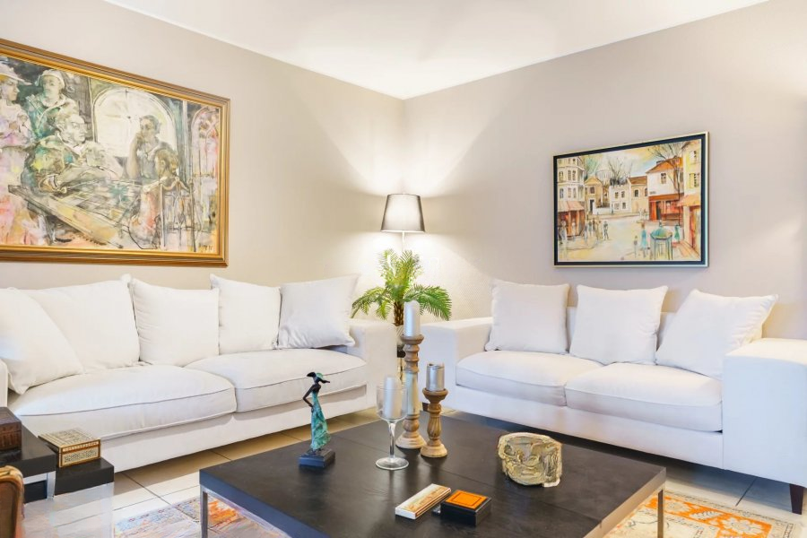 В дополнение к террасе площадью около 10 м² квартира имеет частный подвал. Среди дополнительных особенностей: очень светлая атмосфера, тройное остекление, электрические жалюзи, плиточное и паркетное покрытие, газовое отопление (радиаторы). Не требуется никаких ремонтных работ, возможна переделка под третью спальню. По правилам совладения объект может использоваться как офис. Это сочетание просторности, света, террасы и гибкости планировки делает объект уникальным предложением.