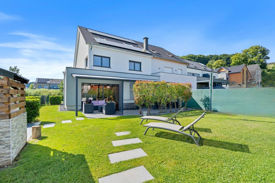 Участок полностью огорожен, с красиво оформленным садом, перголой для отдыха на свежем воздухе и практичным садовым домиком для хранения. Войдя, вы попадете в приветливый холл, ведущий в просторную светлую гостиную и уютную столовую с большими окнами, благодаря которым помещение залито светом.