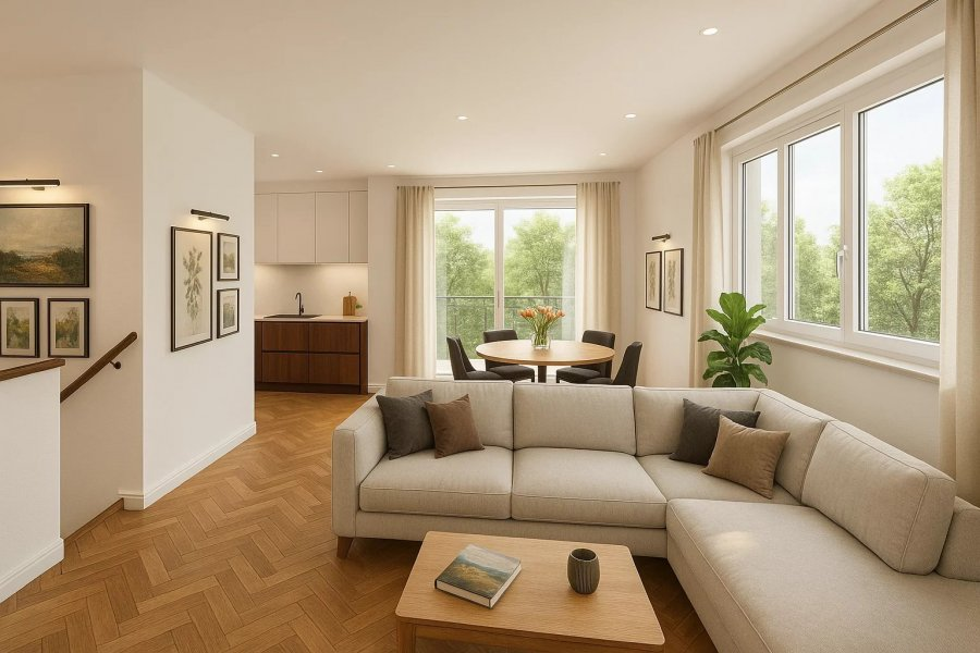 VEFA - 3-комнатный дуплекс с большой террасой находится в проекте Villa Verde в Keispelt, что в муниципалитете Kehlen. Этот двухквартирный дом с двумя дуплексами расположен в окружении сельской местности, предоставляя потрясающий вид на природу. B.02 находится на верхних уровнях и занимает площадь ±130.52 м² вместе с просторной террасой.