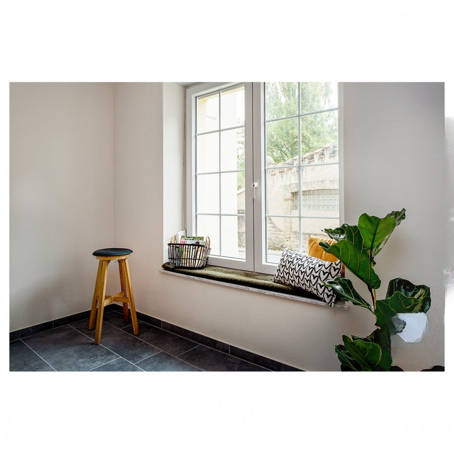 Экстерьер: дом, построенный в начале 1900-х годов, находится в рядовой застройке с обеих сторон. Он предлагает около 160 м² жилой площади и частную парковку площадью примерно 15 м² перед домом. Крышу покрывает шифер.