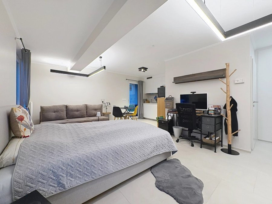 Этот очаровательный студийный апартамент, полностью отремонтированный в 2022 году, находится на первом этаже резиденции, построенной в 1994 году, в районе Porte des Ardennes в Erpeldange-sur-Sûre. Удобно расположенный между Diekirch и Ettelbruck и всего в нескольких минутах от трассы N7, ведущей в Люксембург (Кирхберг), он выделяется своей центральной и практичной локацией.