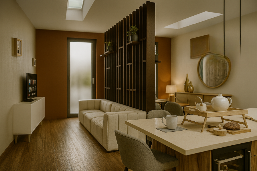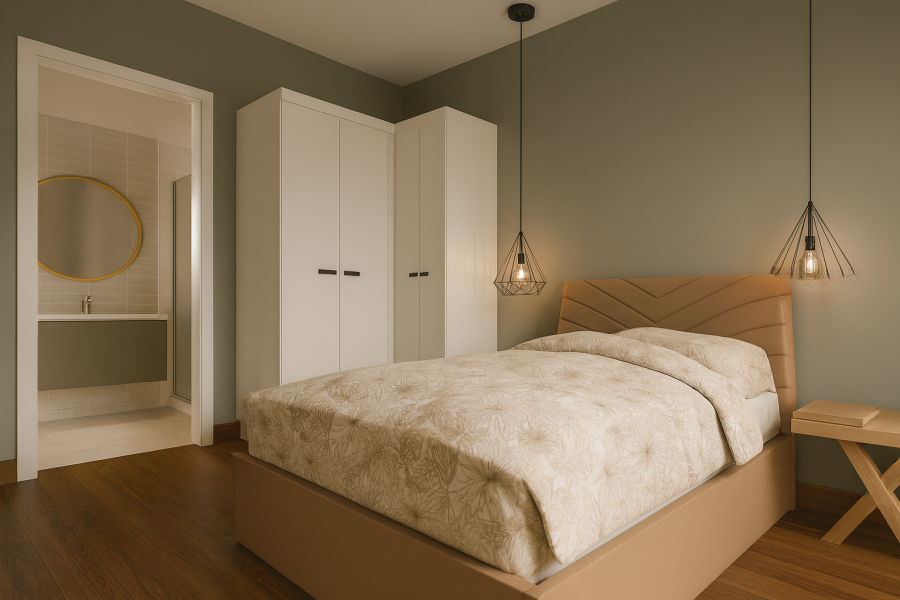 В квартире уже завершены основные технические работы: электрические и сантехнические установки, напольное отопление, двойная вентиляция, установлены окна, гипсокартон, изоляция и стяжки. Общие зоны развиваются согласно плану, а фасадные работы начнутся в начале 2026 года.