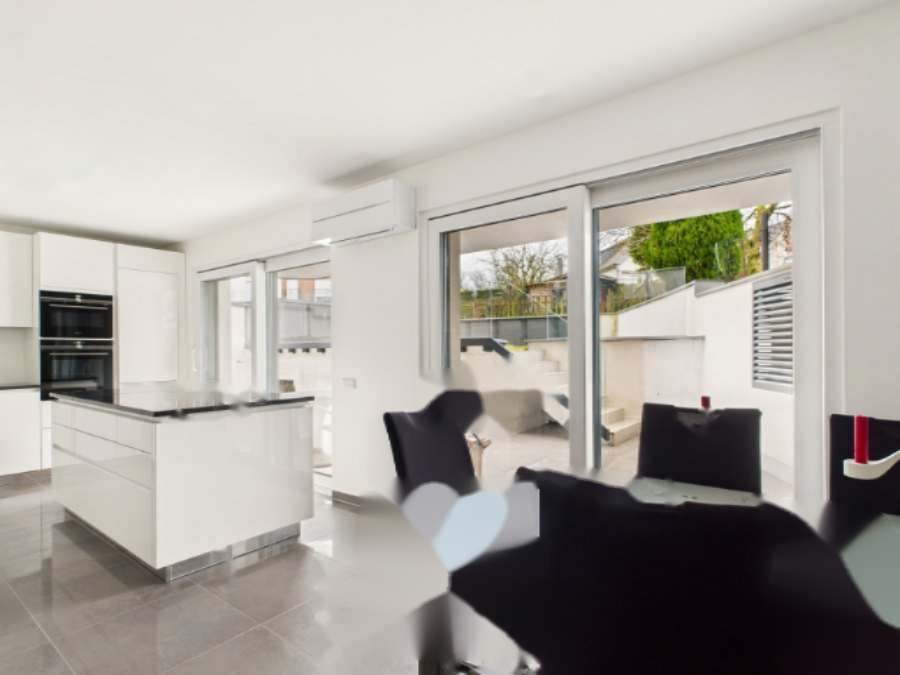 Гостиная и кухня, открытые к внешнему пространству, ведут прямо к террасе и саду, создавая теплую и дружественную атмосферу для жизни. Это идеальная обстановка для семейных встреч, наслаждения солнечными днями и игры детей под наблюдением родителей.