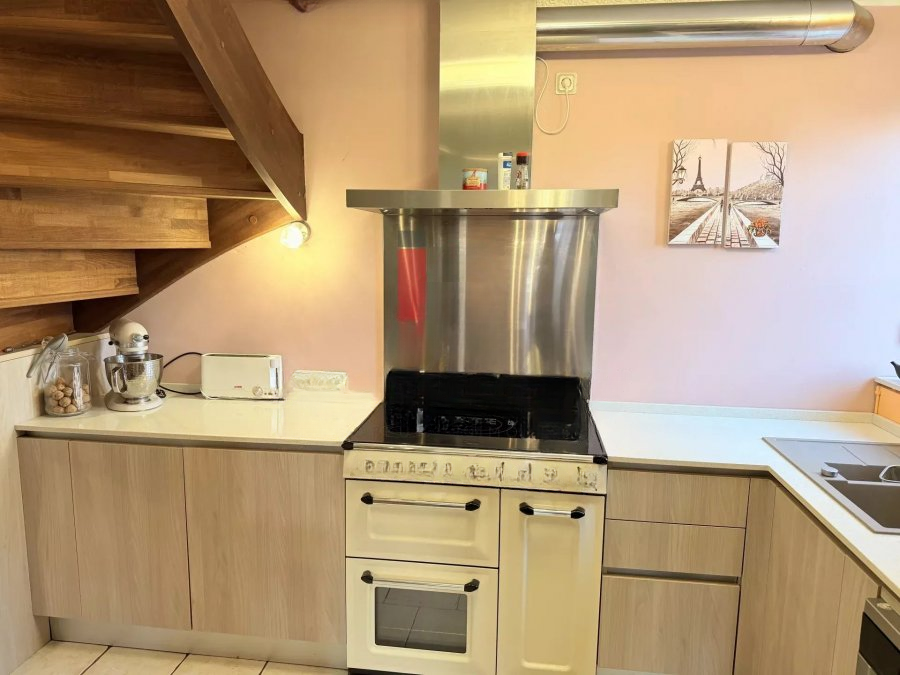 Дом оснащен террасой (12 кв. м) и внутренним двором (44 кв. м), который может использоваться как парковочное место. Технические характеристики: оштукатуренный фасад, бетонные плиты, кладка из натурального камня, черепичная крыша, масляное отопление (радиаторы), окна из ПВХ с двойным остеклением, ручные жалюзи.