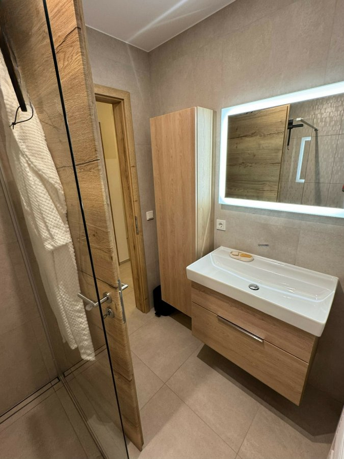 Преимущества дуплекса: подогрев пола, энергетический паспорт B/B, тройное остекление, электрические рольшторы.