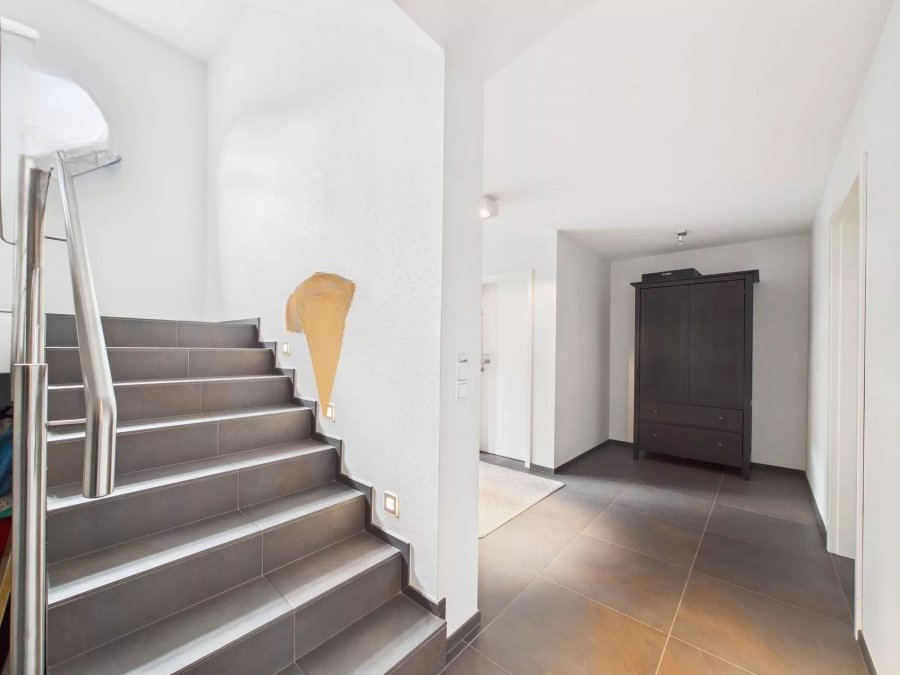 На первом этаже есть холл, отдельный туалет, техническое помещение и гараж на две машины. На втором этаже — холл, открытая кухня, гостиная с выходом на террасу и в сад, душевая комната с туалетом и кладовая. Чердак разделен на три спальни, ванную комнату с туалетом. Необорудованный чердак.