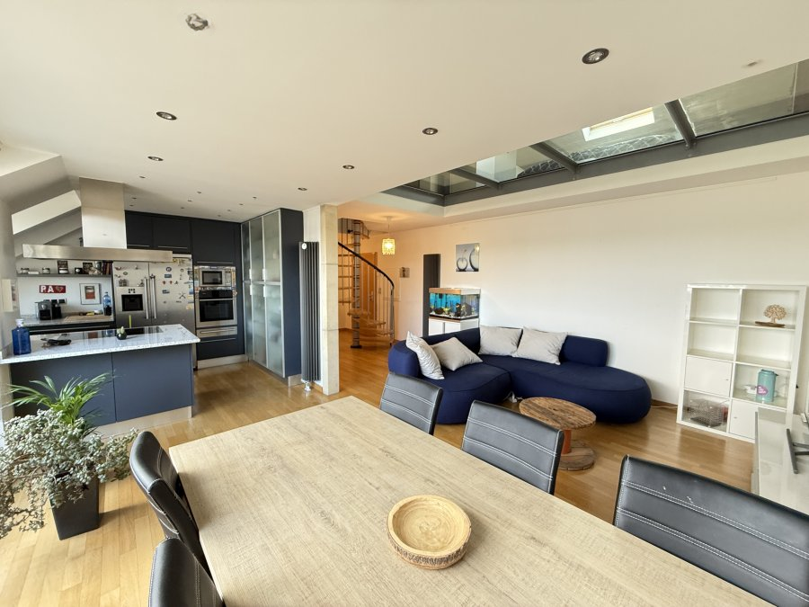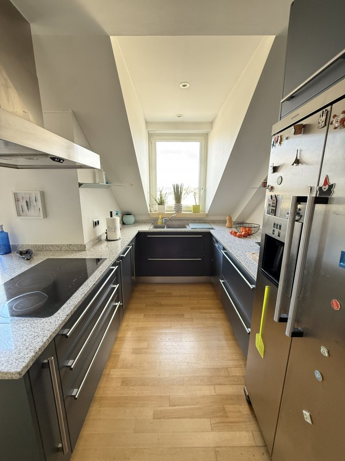 Этот просторный мезонет площадью около 120 м², ориентированный на восток и запад, отличается гармоничным распределением пространства и включает: