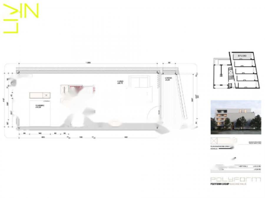 Мы предлагаем студию lot A3.1 на 3 этаже. Она включает в себя оборудованную кухню, открытую в гостиную, ведущую на лоджию площадью 5 м², отдельную зону для сна и ванную комнату с душем и туалетом. В подвале имеется частное хранилище и место в общей прачечной.