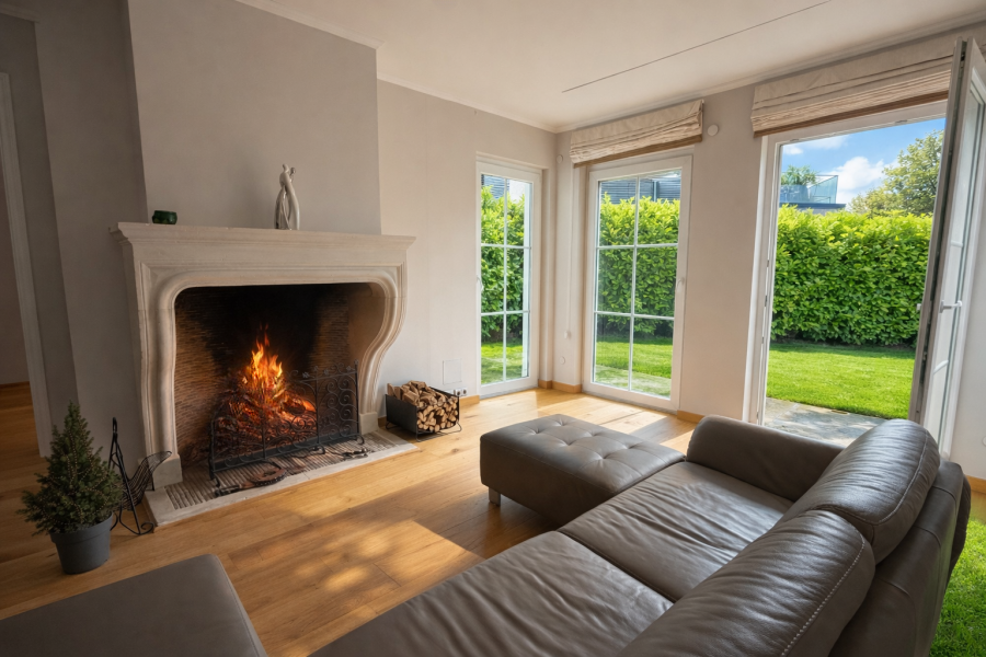 Приглашающий дровяной камин согревает основную жилую зону, добавляя нотку уюта и сезонного комфорта, тогда как обеденные зоны и салоны плавно переходят в сад. Просторная кухня, оснащенная профессиональными газовыми приборами и смежной кладовой, делает ежедневную кулинарию и развлечения одинаково легкими.