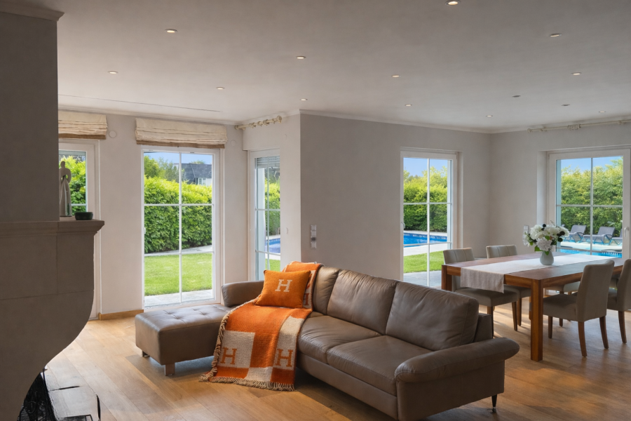 Элегантная вилла, расположенная в престижном районе Кокельшойер, находится в конце тихого тупика, предлагая исключительный уровень уединения, комфорта и удобств для жизни.