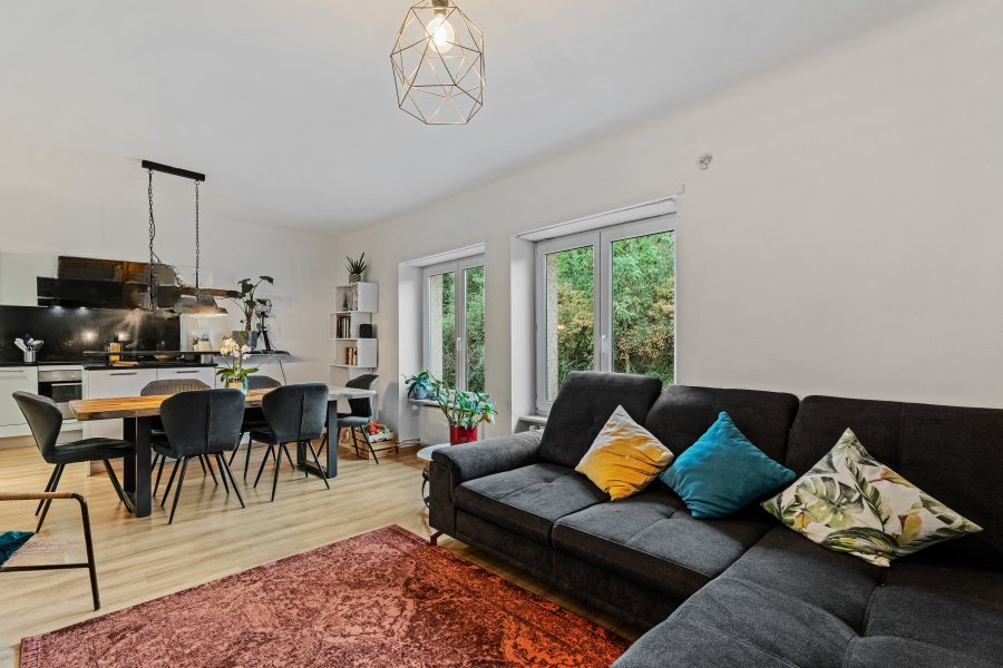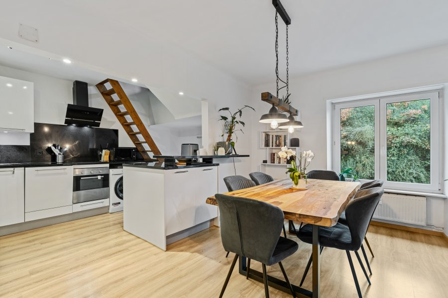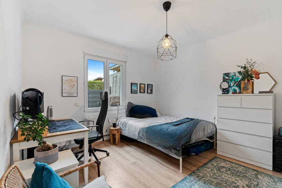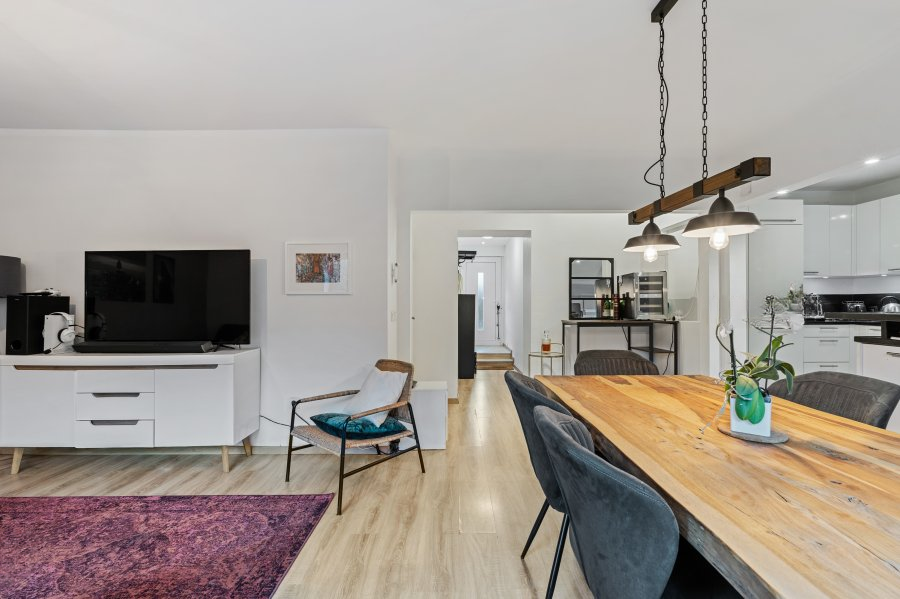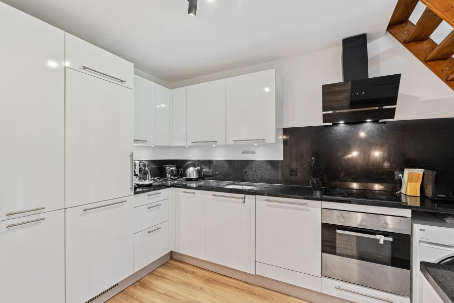 Квартира также доступна через приятную и просторную террасу, идеальную для солнечных дней. Внутри расположены две спальни, душевая комната, а также полностью оборудованная кухня, открытая для гостиной и столовой, создавая дружелюбное и функциональное жилое пространство. Из кухни лестница ведет в небольшой кабинет на антресоли, идеальный для работы на удаленке или уютного уголка для чтения.