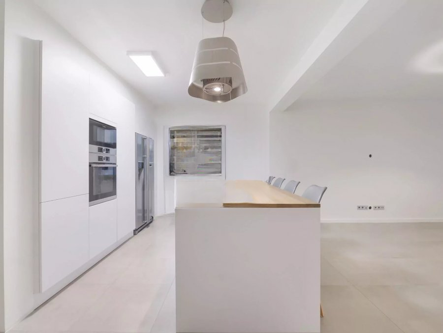 - Большая гостиная с открытой кухней (+35м²) и выходом на большую террасу (±45м²) с маркизой