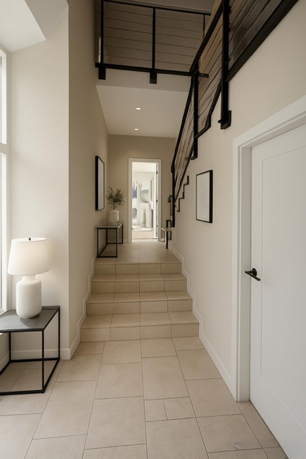 На первом этаже вас встречает просторный холл с гардеробной и спальней, которая сейчас используется как кабинет. Здесь же расположена прачечная с подключением для стиральной машины.