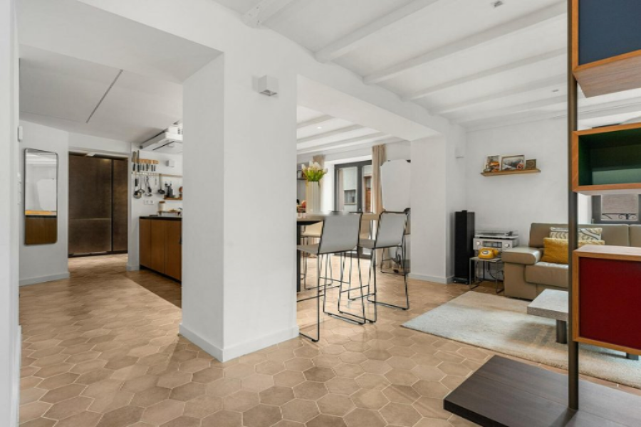 Квартира доступна через собственный вход с прекрасного двора и напоминает дом. Тщательно обновленная в 2022 году, она предлагает идеальное сочетание старинного шарма и современного комфорта. Главная жилая зона организована вокруг кухонного пространства от Boffi — настоящего центра дома, где приятно собраться и провести время.