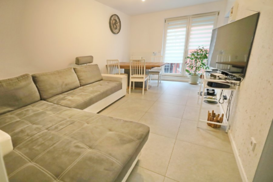 Расположенная на первом этаже небольшой многоквартирной резиденции в Differdange-Fousbann, она включает в себя прихожую, оборудованную кухню, смежную с гостиной с выходом на балкон, кладовую, 2 спальни, ванную комнату с ванной и WC, а также частный подвал.