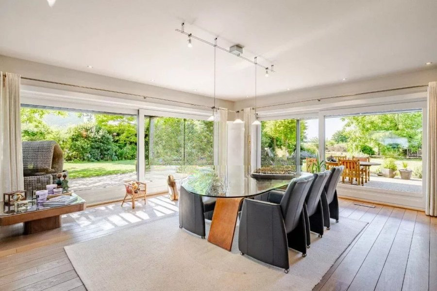 На первом этаже: прихожая; гостиная с обеденной зоной, имеющая прямой выход в сад, ориентированный на юго-запад; открытая кухня; кабинет с панорамным видом на сад; терраса с садом, ориентированным на юго-запад; отдельный туалет.