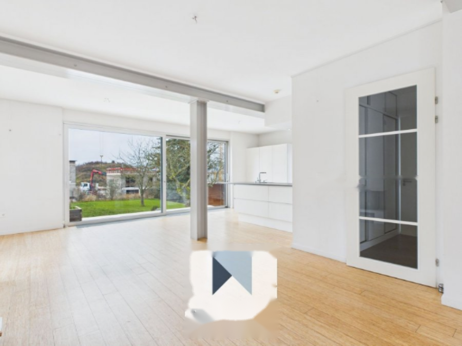 На первом этаже: прихожая площадью ± 6 м² (с встроенным шкафом) ведет в двойную гостиную/столовую площадью ± 67 м² с камином и выходом на террасу площадью ± 20 м² с видом на сад, с южной ориентацией. Там же находится кухня открытого типа площадью ± 18 м² и отдельный туалет. ️