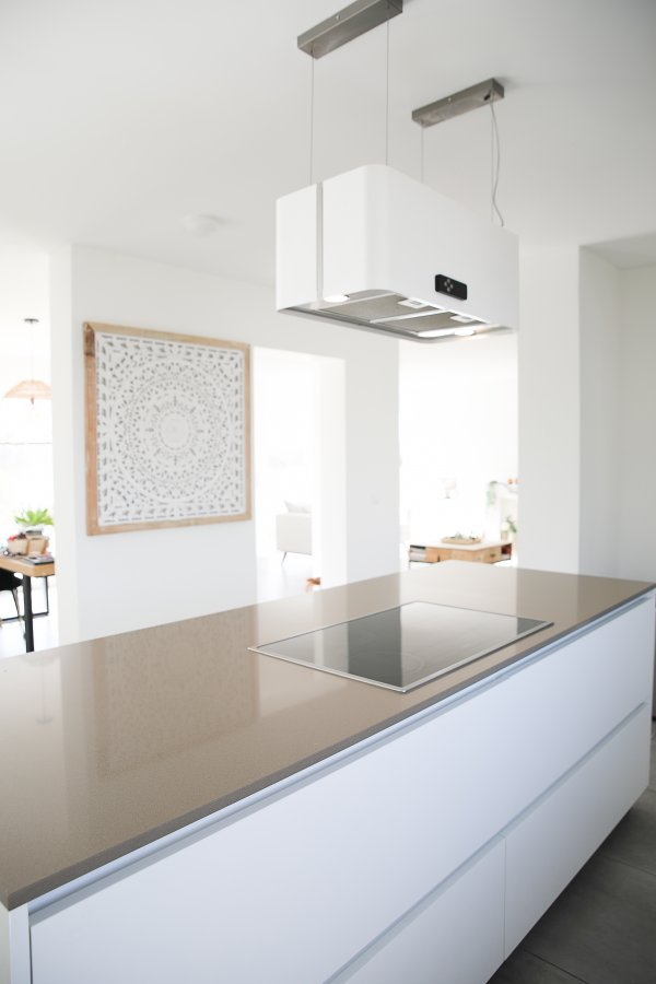 На первом этаже находятся открытые жилые пространства: гостиная, столовая, кухня и кабинет; гостевая спальня с душевой; прачечная; отдельный туалет и гараж на 1 автомобиль. Просторная терраса площадью 40 м² доступна из гостиной, кабинета и спальни.
