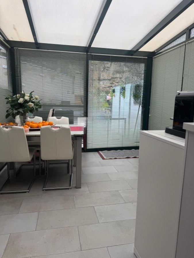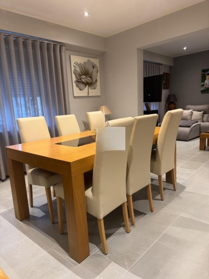 На первом этаже имеется просторная гостиная и столовая площадью около 35 м², кладовая, душевая комната, отдельный туалет, а также отдельная оборудованная кухня с выходом на террасу, веранда с подогревом пола и сад.