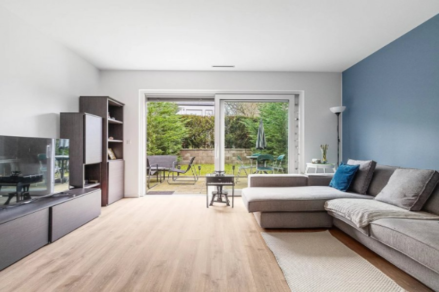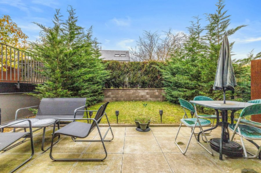 На первом этаже находится прихожая, ведущая в светлую гостиную, полностью оборудованную кухню с прямым выходом на террасу и в сад, а также отдельный туалет. На втором этаже расположены две спальни, в одной из которых есть гардеробная, и ванная комната. Коридор на третьем этаже ведет к двум спальням и еще одной ванной комнате. Двойной гараж и подвал находятся напротив дома.