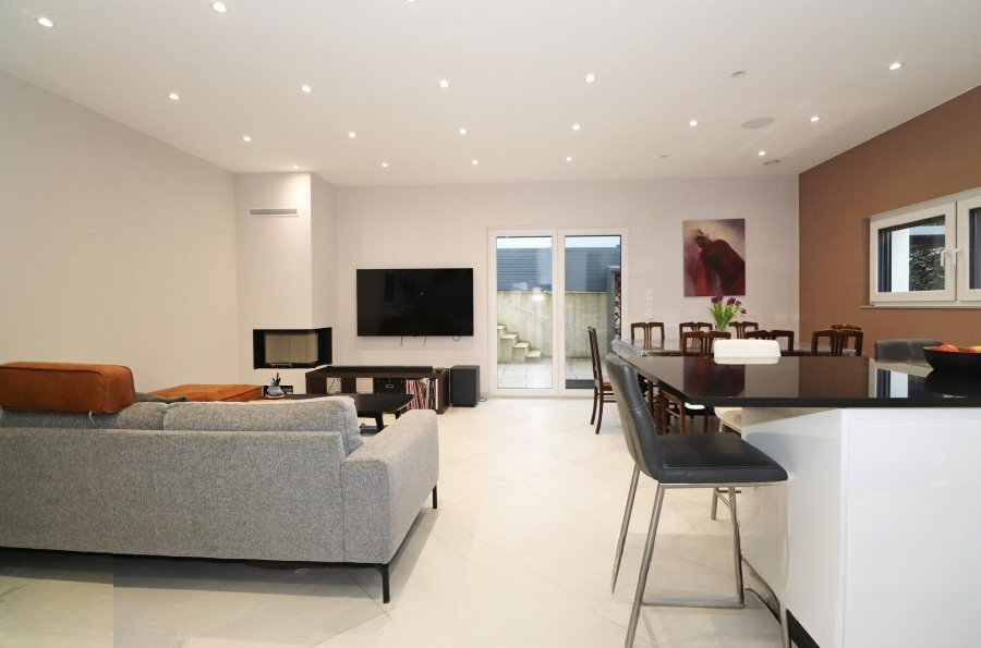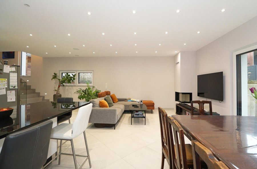 На первом этаже: прихожая с встроенным шкафом ведет в гостиную с камином и оборудованную открытую кухню, обеспечивая уютное жилое пространство. Отдельный туалет и просторный гараж, вмещающий две машины.