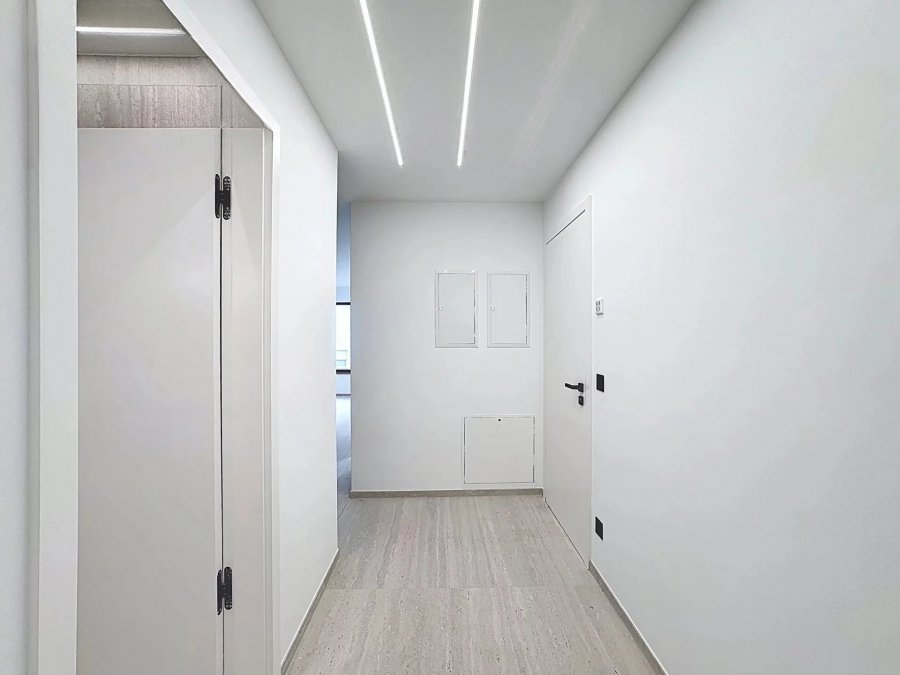 Квартира доступна для немедленной сдачи в аренду. Эргономичная планировка включает в себя просторный холл, светлую гостиную с полностью оборудованной открытой кухней (встроенная кухня Möbel Martin) и большие панорамные окна. Спальня оснащена алюминиевыми окнами с тройным стеклом и жалюзи, а в современной ванной комнате установлена душ-кабина с итальянским душем. Такое расположение помещений обеспечивает высокую арендную привлекательность и низкий риск вакантности.