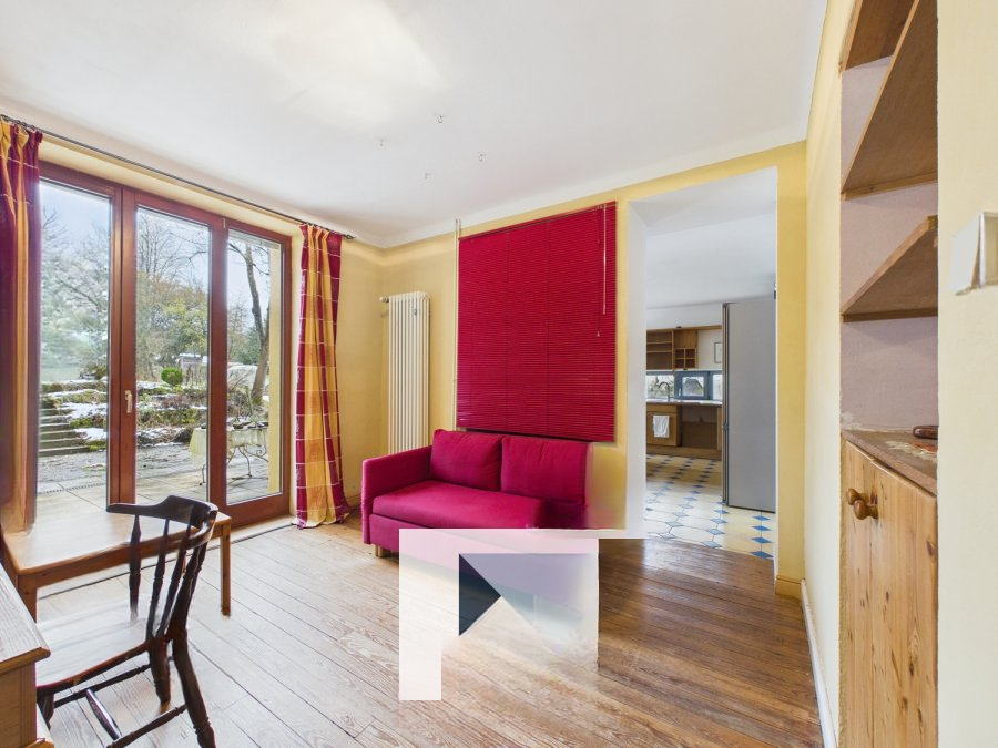 Этот дом, расположенный в деревне Hobscheid, расширен в 2000-х годах и предлагает жилую площадь около 185 м², а общую площадь — около 310 м². В подвале находятся три погреба размером около 19, 25, и 26 м². На первом этаже прихожая размером около 7 м² ведет в гостиную 17 м², офис 12 м², прачечную 8 м² и просторную кухню-столовую с видом на сад 24 м². Лестница 7 м² обеспечивает доступ на верхний этаж.