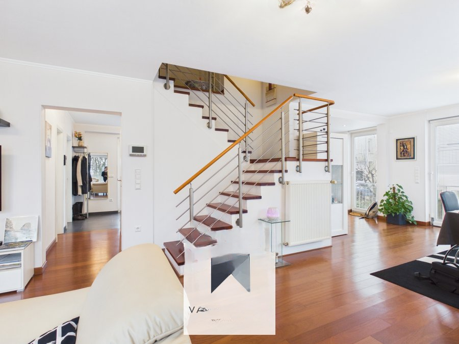 Дом, идеально расположенный в Веймерскирхе, рядом с Кирхбергом и центром города, имеет общую площадь ± 205 м², из которых ± 160 м² — жилая площадь. На первом этаже находится просторная и светлая гостиная площадью ± 52 м² с паркетным полом и дровяной печью, открытая полностью оборудованная кухня с центральным островом, кабинет ± 4 м², ванная комната ± 4 м² и отдельный туалет ± 1,5 м². Гостиная выходит на три балкона ± 4 м² с захватывающим видом.