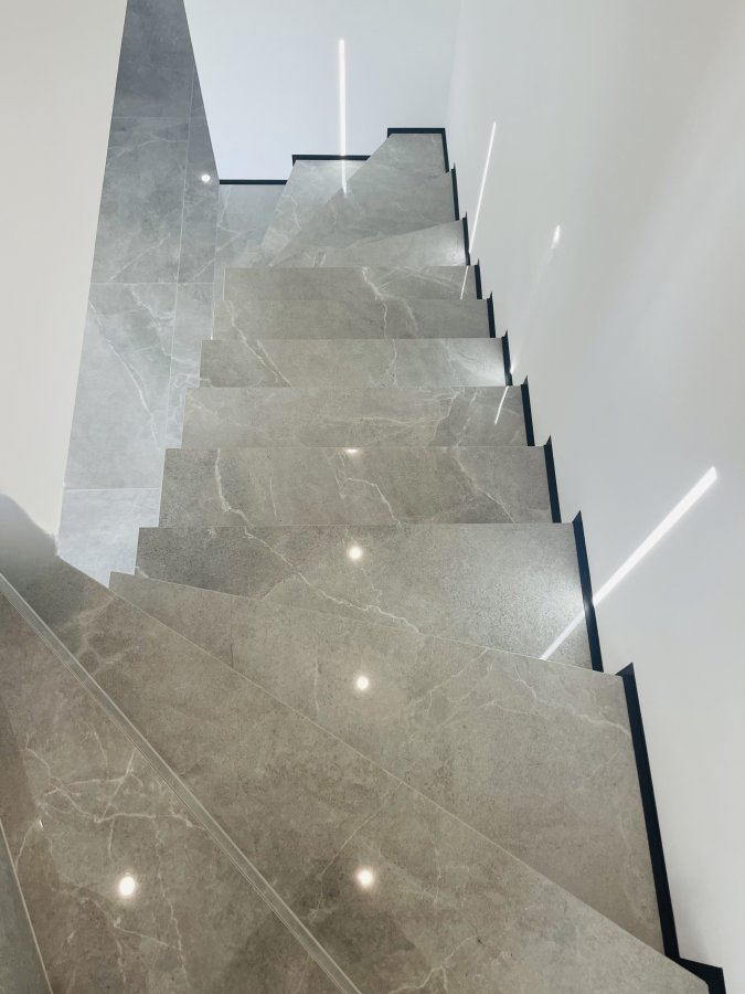 На первом этаже гараж на 2 машины, просторный холл 21.3 м² с прямым выходом на террасу и сад, прачечная и техническая комната, спальня или кабинет 15 м², с выходом на террасу/сад и собственная душевая комната с WC 5.15 м², а также отдельный WC.