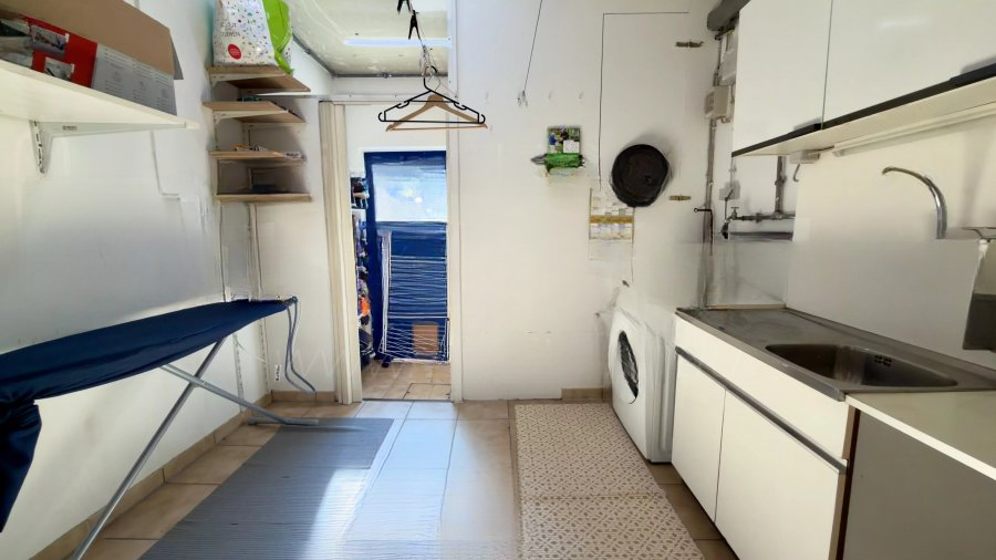 На первом этаже: прихожая, двойная гостиная, оборудованная кухня с выходом на террасу и в сад, отдельный туалет, прачечная/подсобное помещение, гараж на 1 автомобиль, ванная комната.