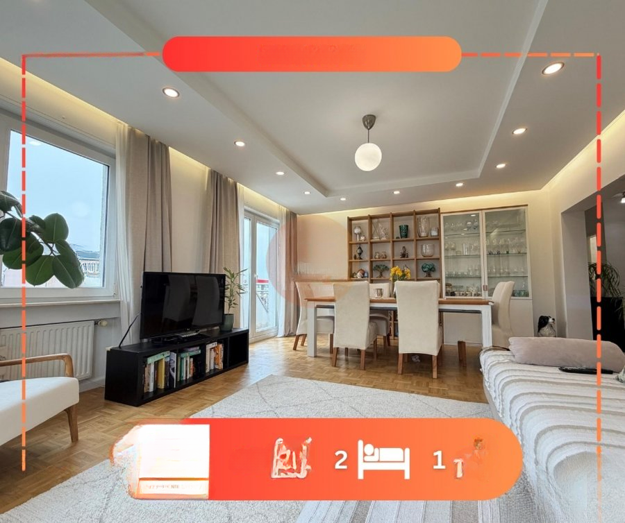 Эта просторная квартира площадью около 90 м² полностью отремонтирована с использованием высококачественных материалов и отделки. Она находится в ухоженном здании с лифтом, построенном в 1998 году.