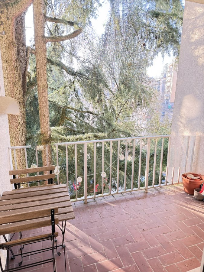 Планировка квартиры включает в себя: большой светлый гостиный зал с прямым выходом на балкон, современную оборудованную кухню, открытую к жилому пространству, просторную спальню с паркетным полом, ванную комнату с ванной, двойной раковиной и окном, а также отдельный туалет. Балкон предоставляет возможность насладиться зелёными и спокойными видами, идеально подходящими для отдыха.