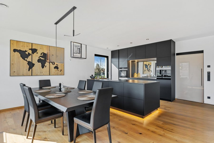 Коридор открывается на уютную зону гостиной с полностью оборудованной кухней и центральным островом, созданной для приятных моментов общения. Бытовая техника от Siemens включает индукционную плиту с встроенной вытяжкой от Miele, смеситель Grohe (с функцией подачи газированной воды) и встроенную кофемашину.