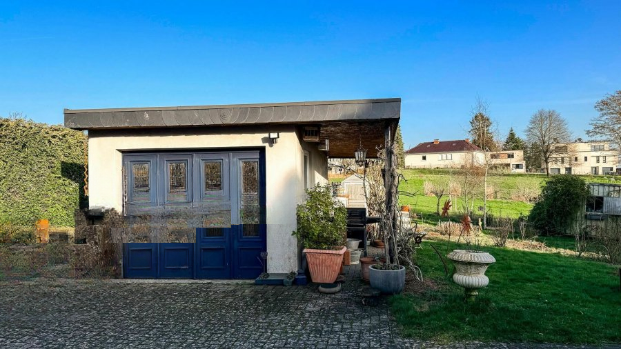 Дом расположен в тихой зоне (зона 30) на большом участке 16,27 ares с крытой террасой, гаражом, двойным карпортом и гаражом для мотоциклов и велосипедов.