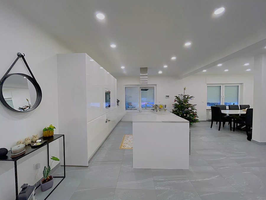 Прекрасный дом, свободный с двух сторон, полностью отремонтирован в 2021 году. Он расположен на участке площадью 2a30 и предлагает жилую площадь 155м² (общая полезная площадь 207м²). На первом этаже вас встречает прихожая с гостевым туалетом, офис или первая спальня площадью 10,93м² и просторная гостиная-столовая площадью 43м² с полностью оборудованной открытой кухней.