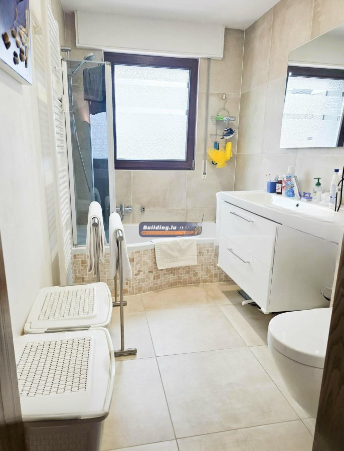 Две большие спальни разных размеров обеспечивают комфортное проживание. Ванная комната оснащена ванной и туалетом с окном, а также имеется отдельный санузел. Частная прачечная и подвал дополняют удобства. Кроме того, имеется закрытый гараж в здании.