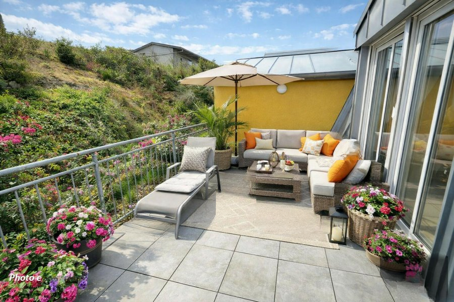 Терраса №1 имеет площадь примерно 17 м², терраса №2 — примерно 16 м². Имеется внутреннее парковочное место и приватный подвал.
