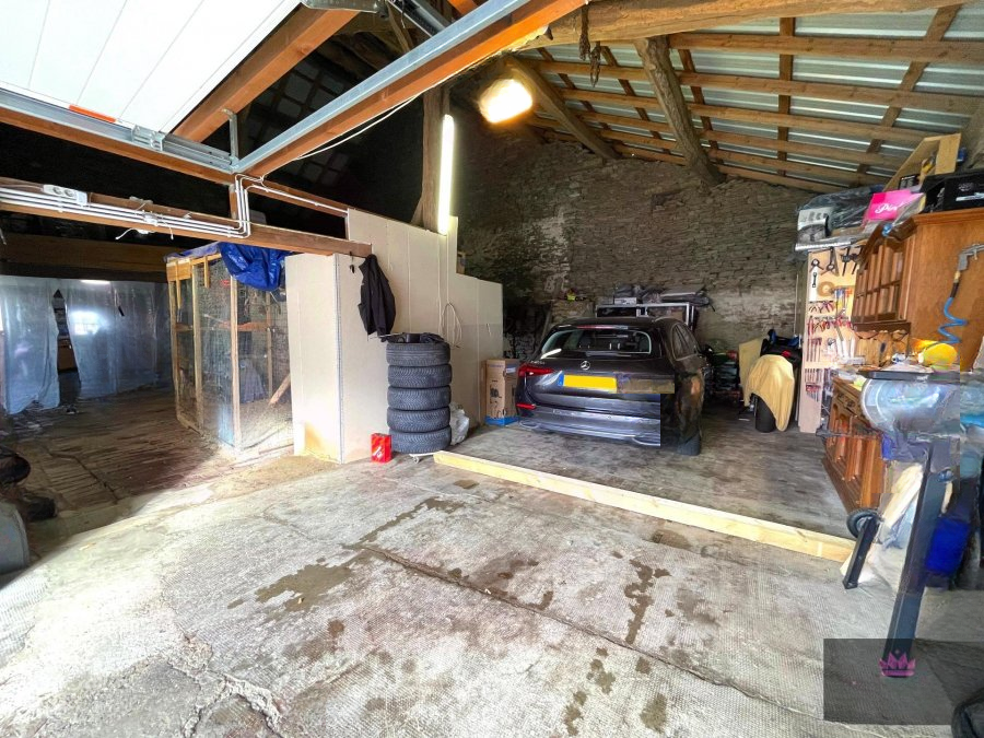 Дополнительно имеется гараж площадью около 170 м², с возможностью создания второго уровня (около 170 м²), а также терраса (около 35 м²) и подвал с арочными потолками. Окна оснащены двойными стеклопакетами из ПВХ. Полы – деревянные, установлен электрический обогрев. Имеется сервитут. Энергетический и тепловой класс: I/I.