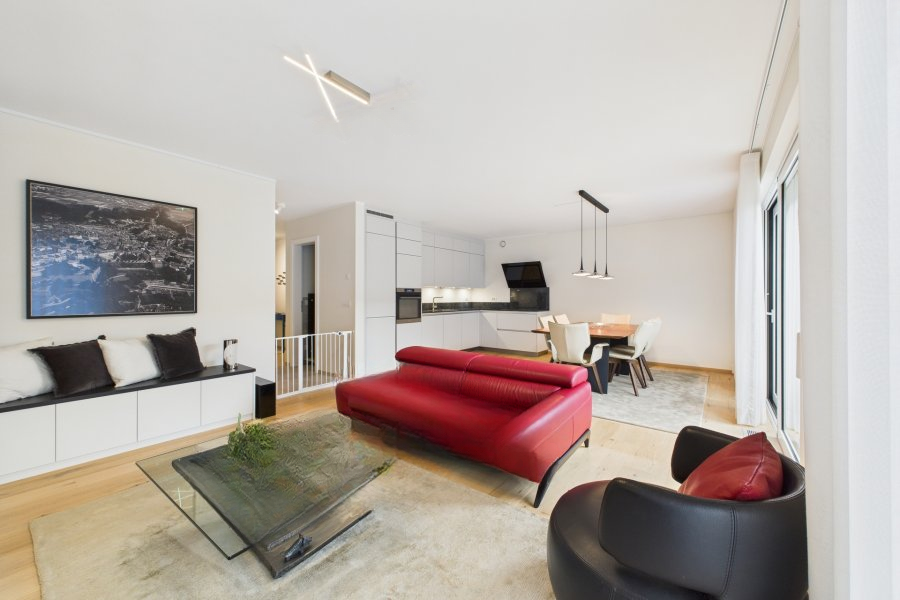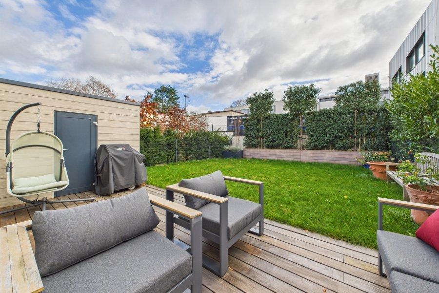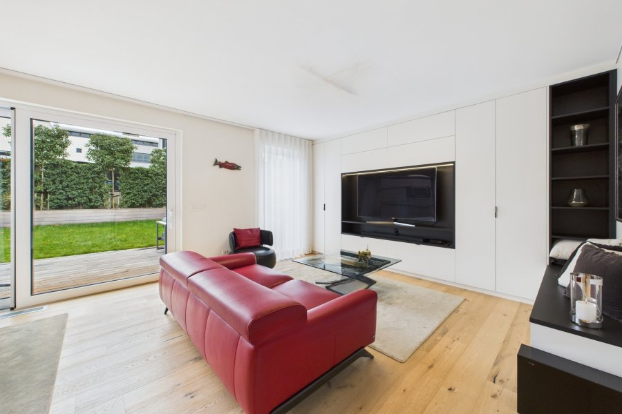 Светлый и высококачественно отделанный апартамент с собственным садом на 86 м² жилой площади, расположенный в двухквартирном доме в тихом жилом районе Бриделя. Входная зона включает встроенный шкаф и изготовленную на заказ библиотеку. Просторная гостиная с тумбой под ТВ и множеством мест для хранения, а также удобная столовая с полностью оборудованной открытой кухней (46,8 м²) имеет прямой доступ к террасе (18 м²) и частному саду (60 м²). Апартамент включает 2 спальни: одна с большим гардеробом на заказ, другая с откидной кроватью и шкафа на заказ (16,5 м² + 8,6 м²). Есть душевая комната с шкафами (6,5 м²) и отдельный туалет (1,7 м²).