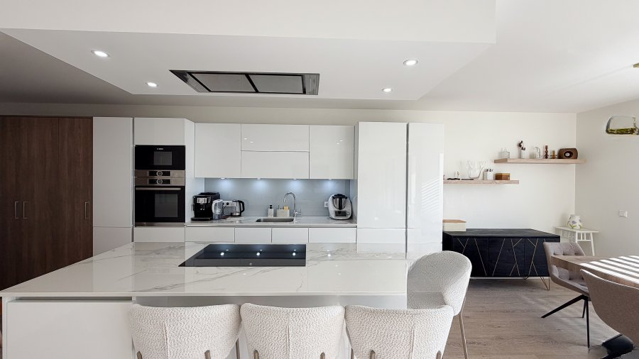 Построенные в 2021 году, эти апартаменты предлагают гармоничную планировку помещений и просторную жилую зону, являющуюся сердцем квартиры. Здесь расположена полностью оборудованная открытая кухня, идеальная для любителей готовки, а также светлая гостиная с большими тройными стеклопакетами и регулируемыми жалюзи.