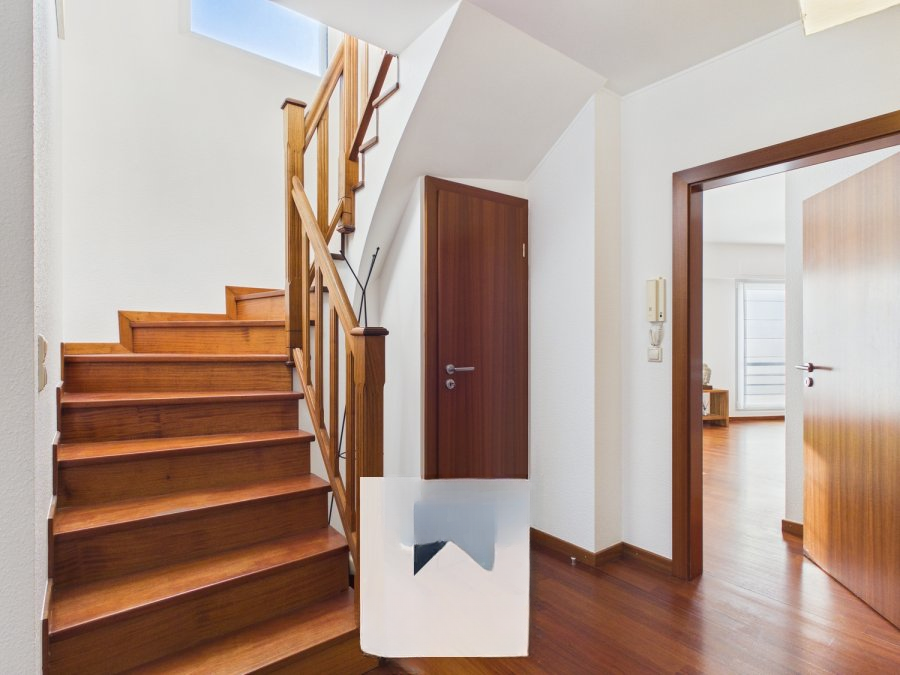 Лестница ведет на верхний этаж в ночной холл площадью около 3 м², соединяющий три спальни площадью 10 м², 10.5 м² и 17.5 м², все с выходом на красивую террасу площадью 41 м² вдоль квартиры, а также ванную комнату площадью 5 м².