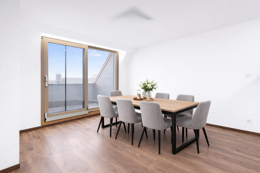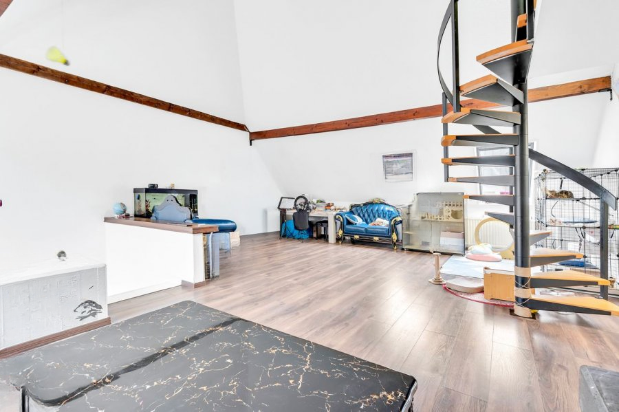 Дуплекс с мезонином в приятном районе Шиффланж предлагает светлые жилые площади и щедрые объемы благодаря соборному потолку. Просторная гостиная площадью ±31 м² оснащена камином, а столовая площадью ±11 м² имеет прямой доступ к террасе. На кухне площадью ±8 м² установлено большое панорамное окно, обеспечивающее много естественного света. Отдельная прачечная занимает около ±8 м².